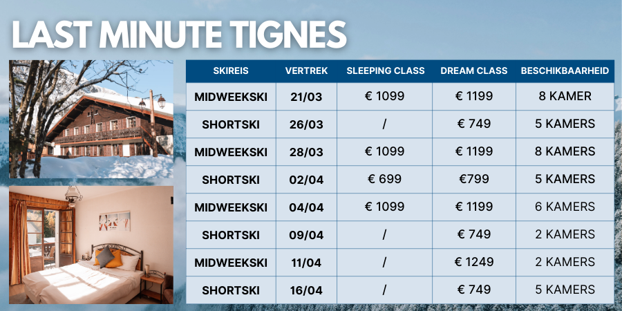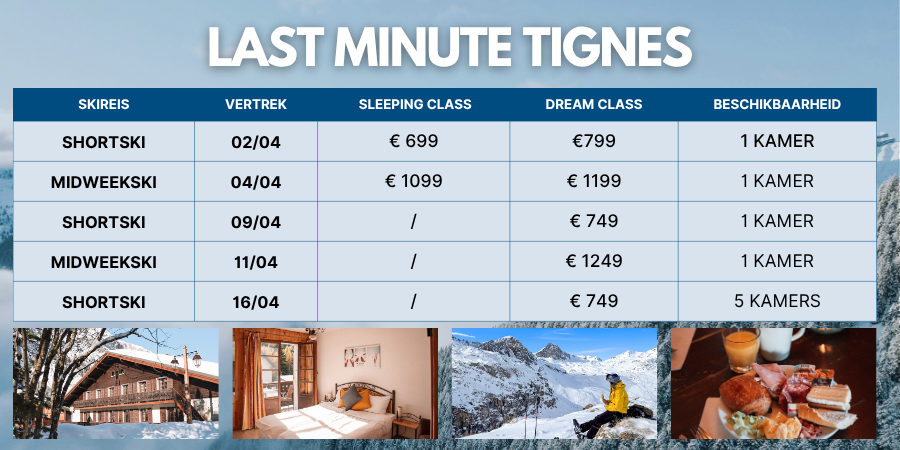 We bundelen al onze last minute aanbiedingen voor het skiseizoen in één overzicht! Profiteer van geweldige deals voor zowel shortski als midweekski naar de populairste bestemmingen: ⛷️Tignes (300 km aan pistes)