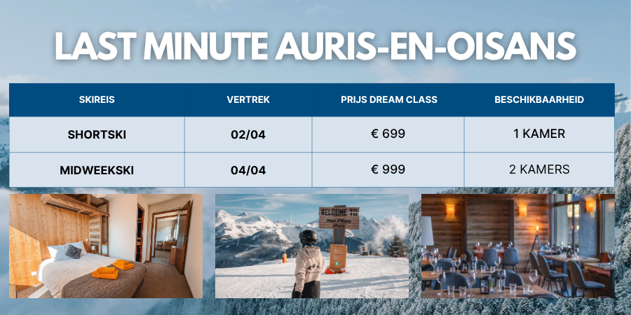 Waarom Auris? Auris-en-Oisans, gelegen in het Alpe d’Huez-gebied, biedt een ideale combinatie van sneeuwzekerheid en gezinsvriendelijke pistes. Perfect voor wie spontaan wil genieten van de bergen tijdens een last minute trip.