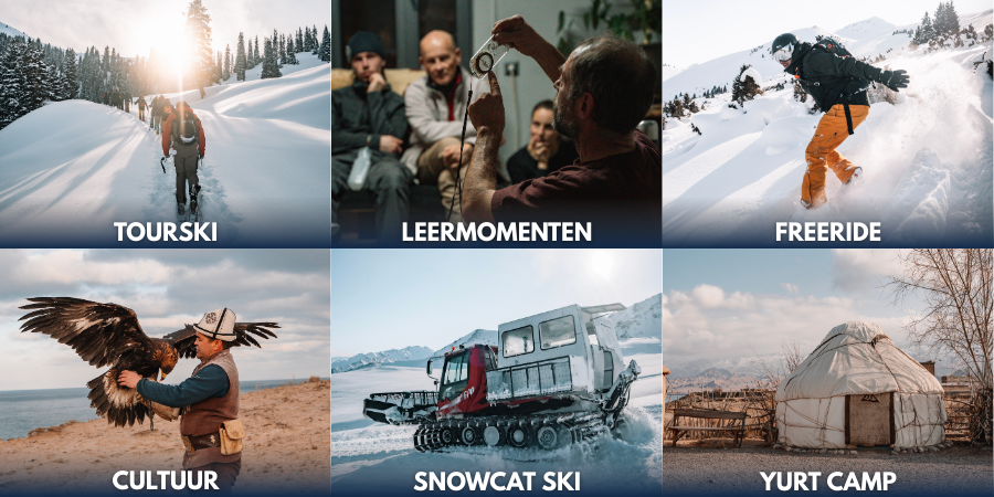 → Geen skiliften, maar pure backcountry vibes: tourskiën, snowcat skiën en maagdelijke poedersneeuw zover je kunt kijken. Voor we de bergen induiken, krijg je van Chef Blom een intensieve training in lawinekunde, oriëntatie en EHBO. Zo ben je niet alleen klaar voor avontuur, maar ook perfect voorbereid om het veilig te beleven. Jyrgalan in het kort? = avontuur, adrenaline en ultieme vrijheid.